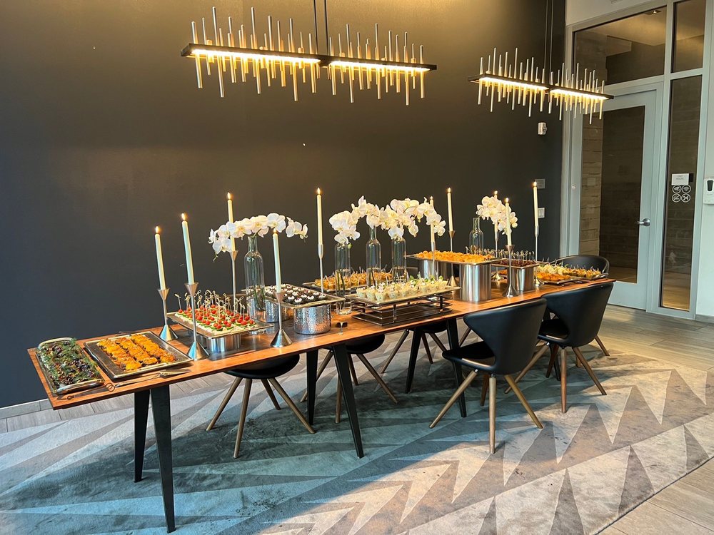 Serves 50 people 12.50 per person A full spread of breakfast taco fixings so each person can create their own breakfast tacos and breakfast bowls Meat, vegetarian, vegan and glutenfree options included Flour Tortillas Corn Tortillas Scrambled Eggs Hash Browns Bacon Chorizo Chicken Apple Sausage Black Beans Refried Beans Shredded Cheese Guacamole Sour Cream Fruit Salad Served with housemade roasted roja, kickin jalapeno chipotle adobo salsas Includes all serving supplies Please list all necessary dietary accommodations in the Special Instructions below.